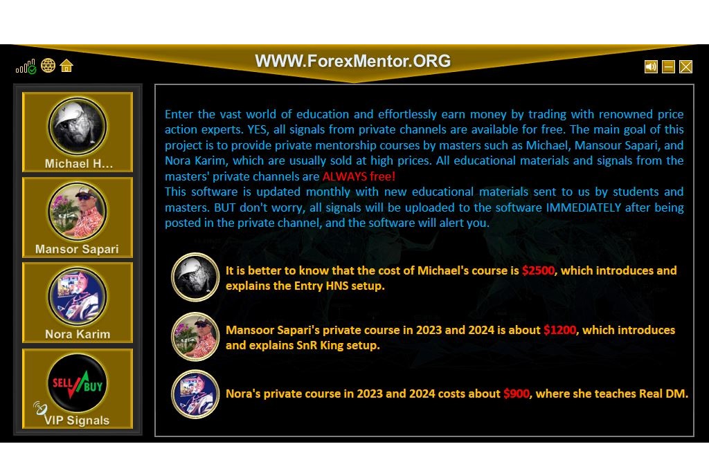 The main goal of this project is to provide private mentorship courses by masters such as Michael Huddleston, Mansour Sapari, and Nora Karim, which are usually sold at high prices.